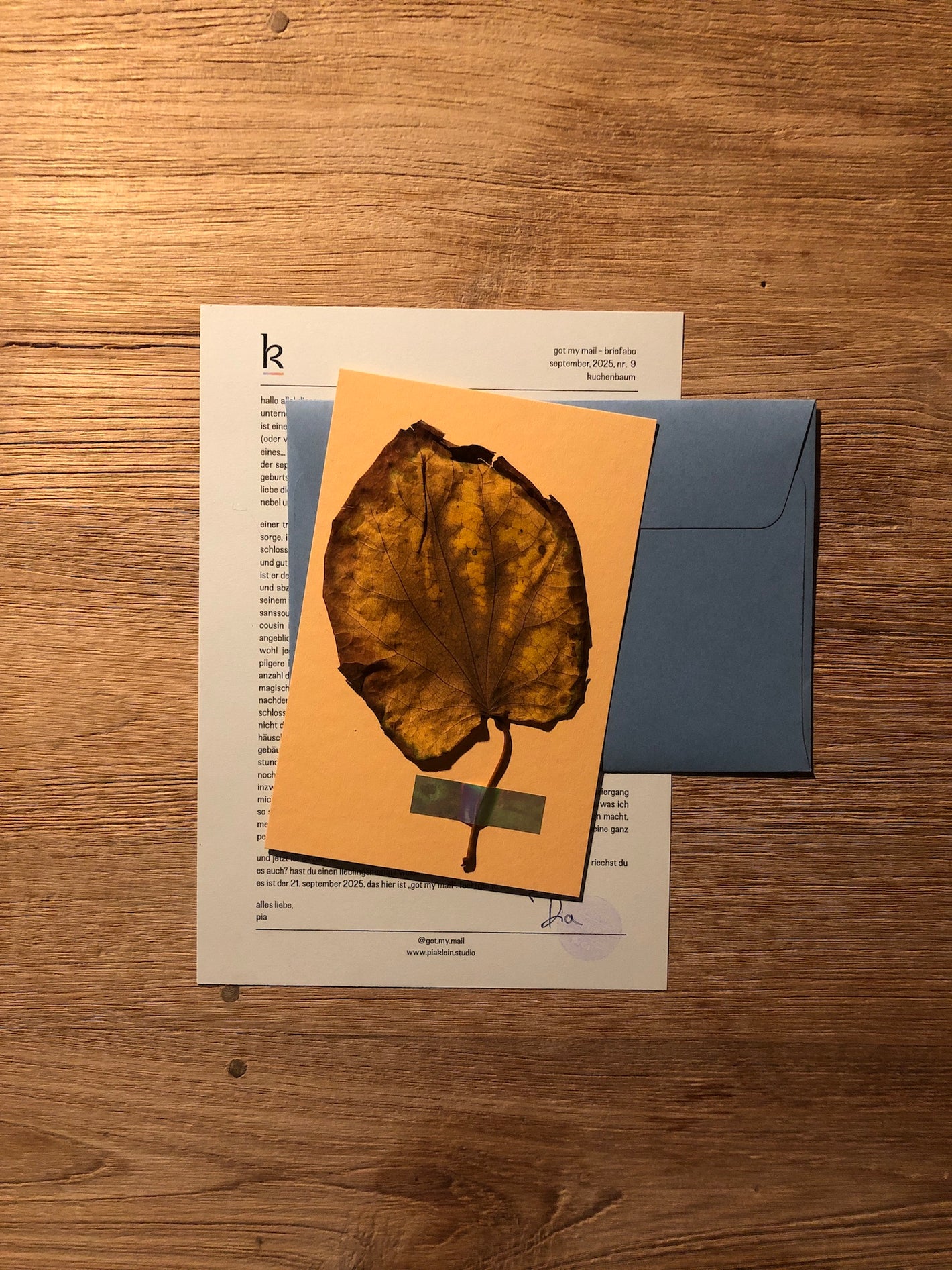 Ich schreibe jeden Monat einen Brief, den ich an dich schicke. Jeder Brief enthält ein persönliches Stück Text - einen Gedanken, ein Gedicht, ein Satz, einen Paragraph aus dem Buch, das ich gerade schreibe. Manchmal zusammen mit einer Illustration.